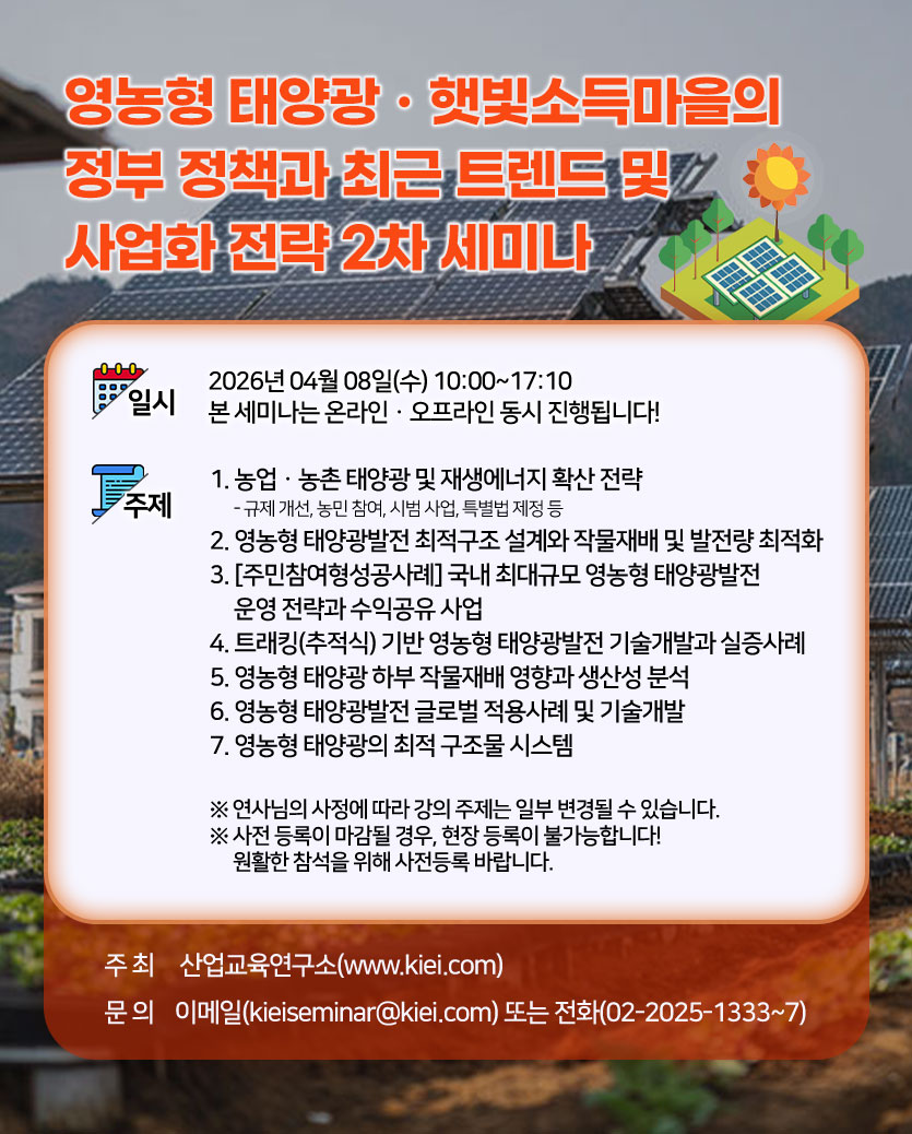 [산업교육연구소] 영농형 태양광ㆍ햇빛소득마을의 정부 정책과 최근 트렌드 및 사업화 전략 2차 세미나